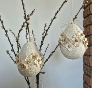 - Jajko wielkanocne z kwiatami będzie towarzyszyć Twojej rodzinie przy świątecznym stole przez wiele sezonów, dlatego że kwiaty nie tracą swojego kształtu ani barwy. To inwestycja w piękno, które nie wymaga pielęgnacji, a zawsze wygląda jak nowe.