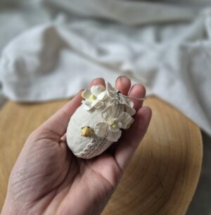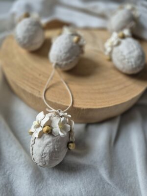 Nowoczesna ozdoba świąteczna o unikalnej, surowej fakturze, dedykowana miłośnikom minimalizmu oraz stylu loftowego. Jej siła tkwi w intrygującej strukturze powierzchni, która w nieoczywisty sposób dopełnia charakter wnętrza. Pisanka jest pozbawiona zbędnych zdobień, doskonale komponuje się z betonem, metalem i nowoczesnym stylem. Stanowi trwałą, oryginalną dekorację, która nadaje wnętrzu luksusowego wyglądu.