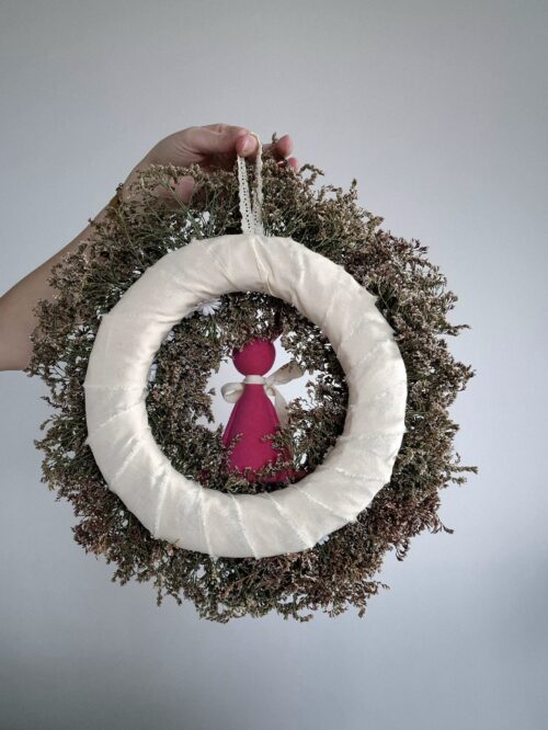 Ręcznie wykonany wianek z suszonego zatrwianu będzie idealną świąteczną dekoracją na drzwi dla każdej miłośniczki naturalnych i ekologicznych dekoracji. Dlatego musisz go mieć albo sprawić bliskiej osobie na prezent.